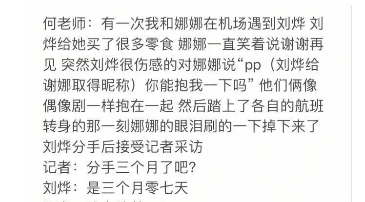 刘烨火了,他的世界迅速变大,片约、活动、应酬,忙得脚不沾地。 谢娜的演员路却走得磕磕绊绊,她的风格好像不太适合当时主流的影视剧。 两个人见面的时间越来越少,从无话不谈到相对无言,那种感觉不是吵架,不是背叛,就是慢慢地不在一个频道上了。 也就在这段时间,谢娜做了一个改变她一生的决定:转行做主持人。 她加入了湖南卫视的《快乐大本营》,从幕后走到台前,用那股天生的热闹劲儿,硬生生在主持圈闯出了一片天。 2006年,这段持续了近六年的感情走到了终点。 分手后有一次在机场偶遇,刘烨递给她一袋零食,全是她爱吃的。 谢娜红了眼眶问:“你还记得我喜欢吃这些啊? ”刘烨哽咽着说:“你不抱我一下吗? ”一个短暂的拥抱后,两人彻底转身,各自奔赴新的人生。 谢娜后来在访谈里提起这段过往,只是平静地说:“那是刻骨铭心的过往,我曾认真爱过,也认真放下。 ”